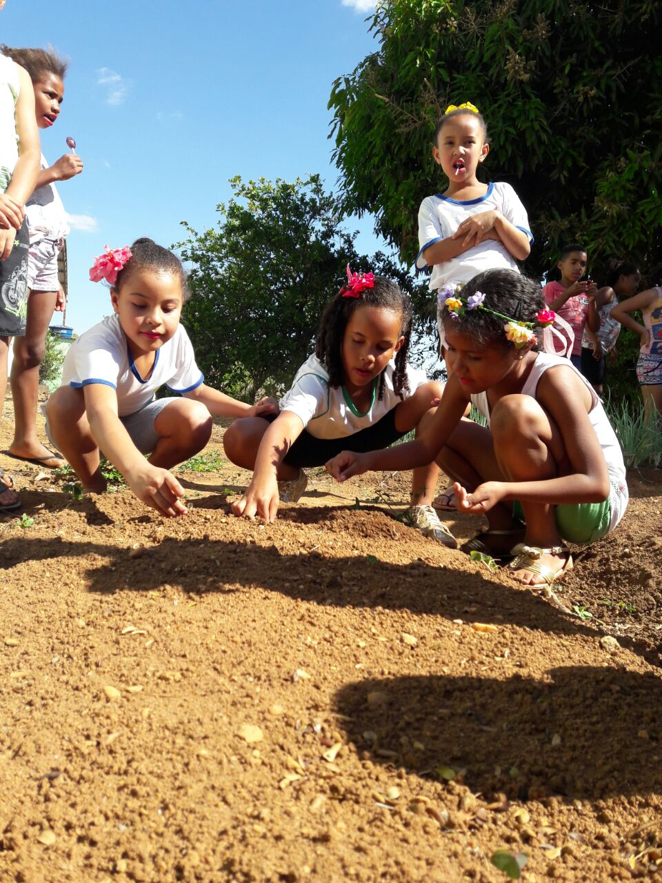 Outra ação que ocorreu na escola foi a doação de sementes para plantio dos alunos na horta. Essa é também uma oportunidade de reforçar o conceito “cultivar para ter”, proposto para reflexão de professores, alunos e funcionários durante as atividades de educação ambiental realizadas da instituição.