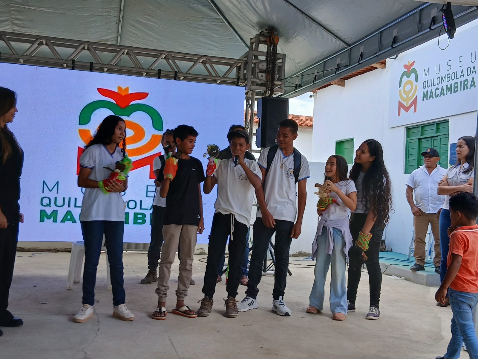 No segundo dia, a programação iniciou com exposição e vivência em máscaras africanas, pintura corporal, oficina de mamulengo, lançamento do filme “Um Cordel de Memórias” e apresentações culturais do grupo de dança Balé Quilombola e do grupo Caçuá, do teatro de João Redondo.