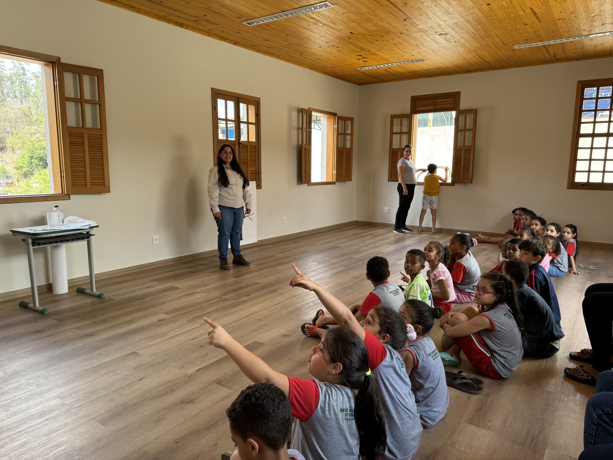 Na Escola Municipal Professora Henriqueta Vitorinha Maia Botelho, em Macaia, distrito de Bom Sucesso (MG), foram realizadas atividades com crianças de 2 a 10 anos. A ação incluiu uma roda de conversa sobre a importância das árvores, atividades de pintura e desenho, além do início do plantio de mudas nativas para recuperar uma nascente local.