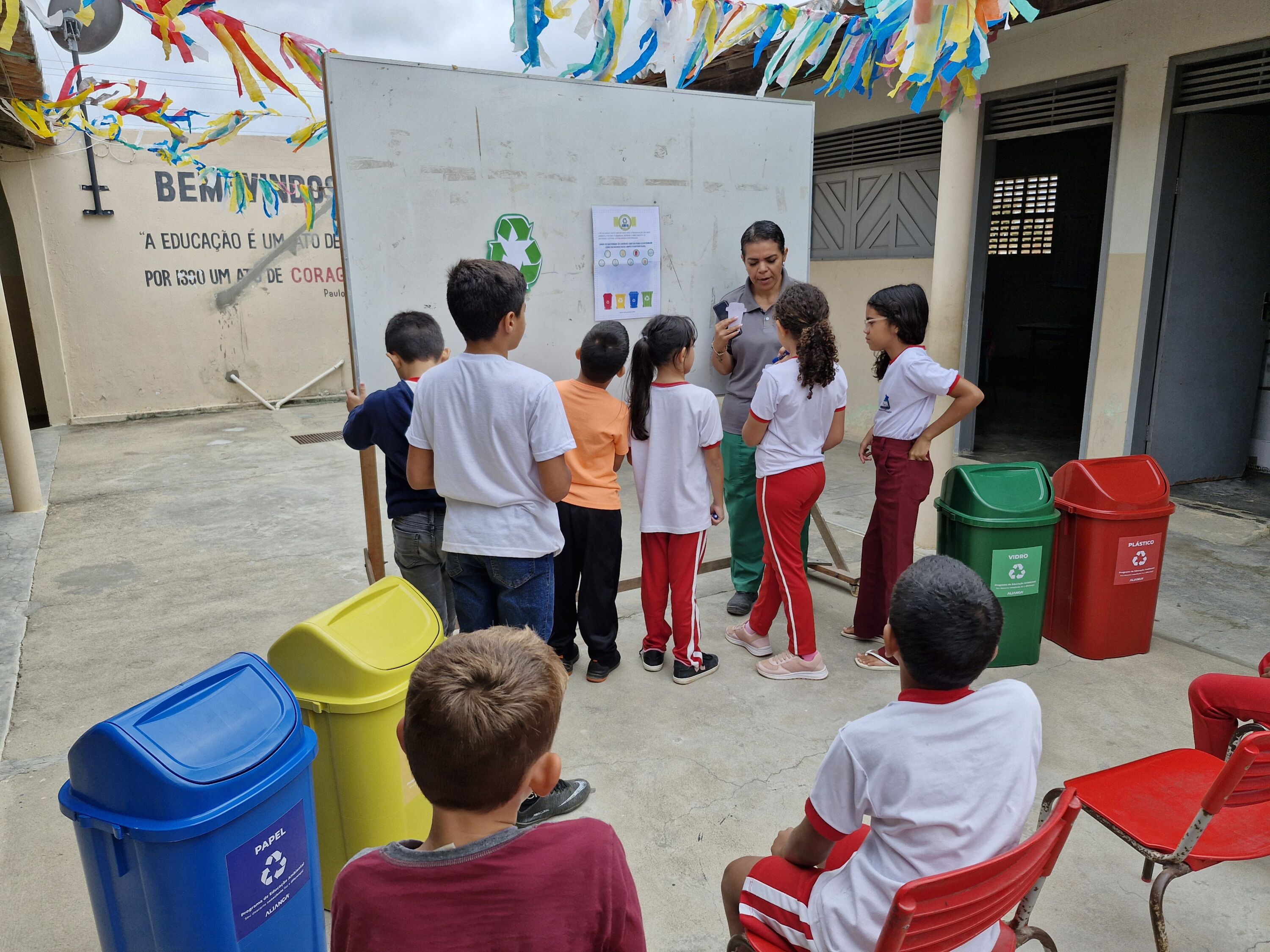 Para complementar o aprendizado e facilitar a aplicação prática do conteúdo, foi entregue à escola um kit completo de lixeiras de coleta seletiva. Dessa forma, alunos e professores podem colocar em prática, de forma imediata, os conhecimentos adquiridos durante a palestra.