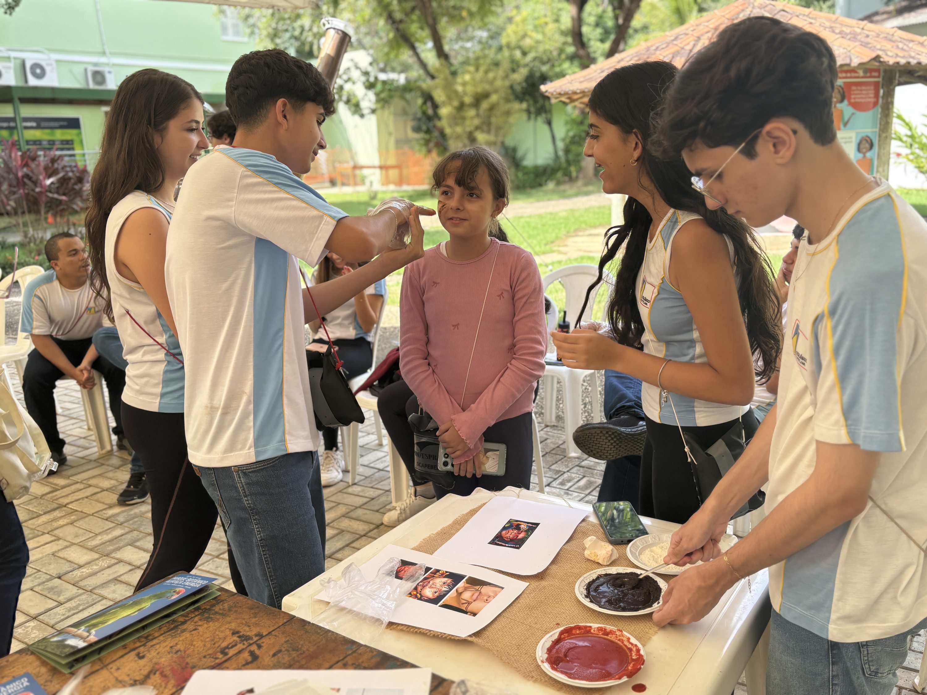 Também foram realizadas atividades práticas, como pintura corporal com materiais naturais adaptados, inspiradas em seus significados culturais, sociais e espirituais. A programação incluiu ainda a abordagem da alimentação indígena, com destaque para ingredientes como mandioca e milho, e o uso de plantas medicinais, reforçando o conhecimento tradicional e sua relação com o meio ambiente.