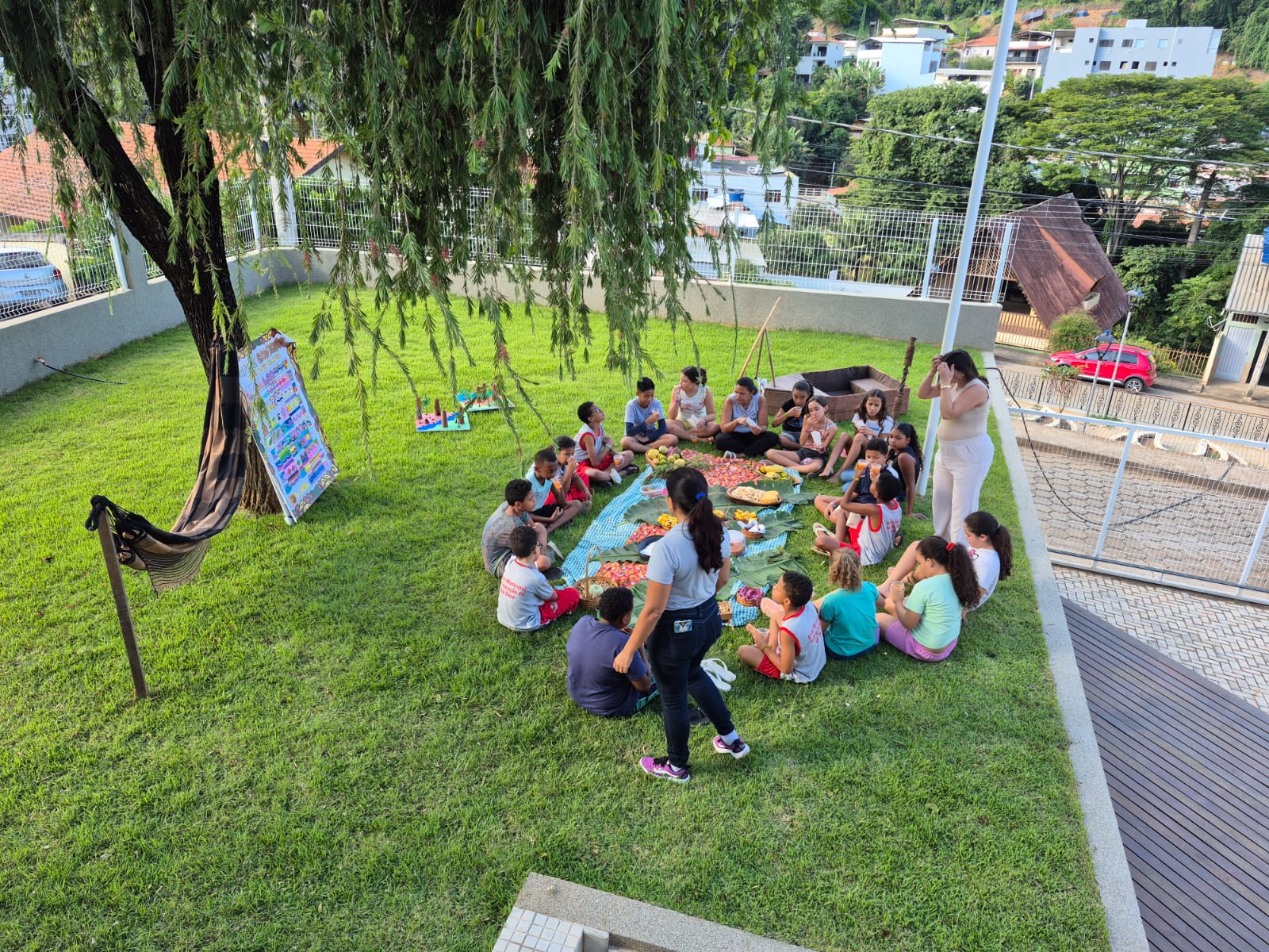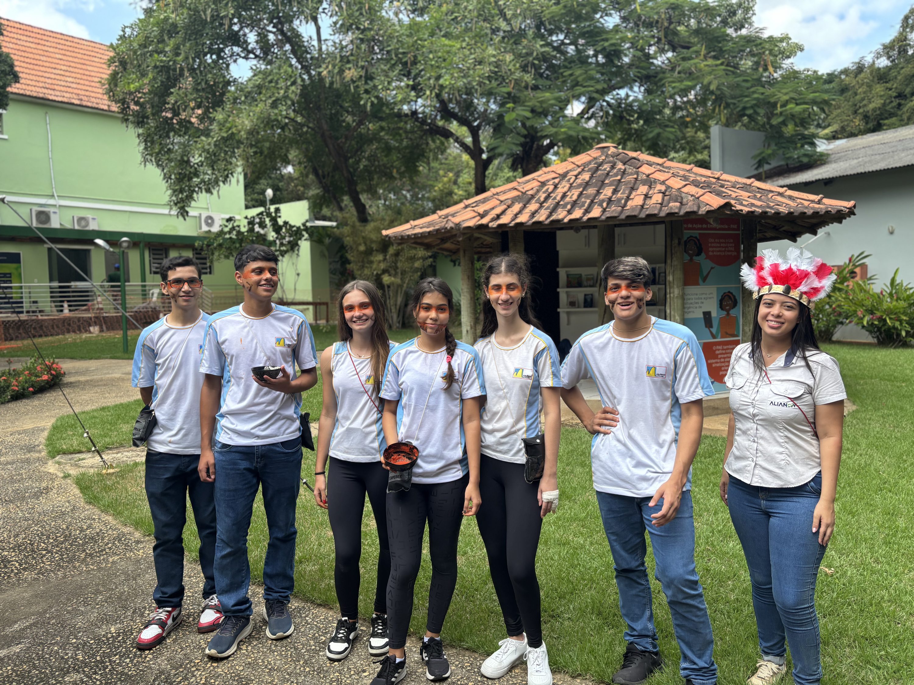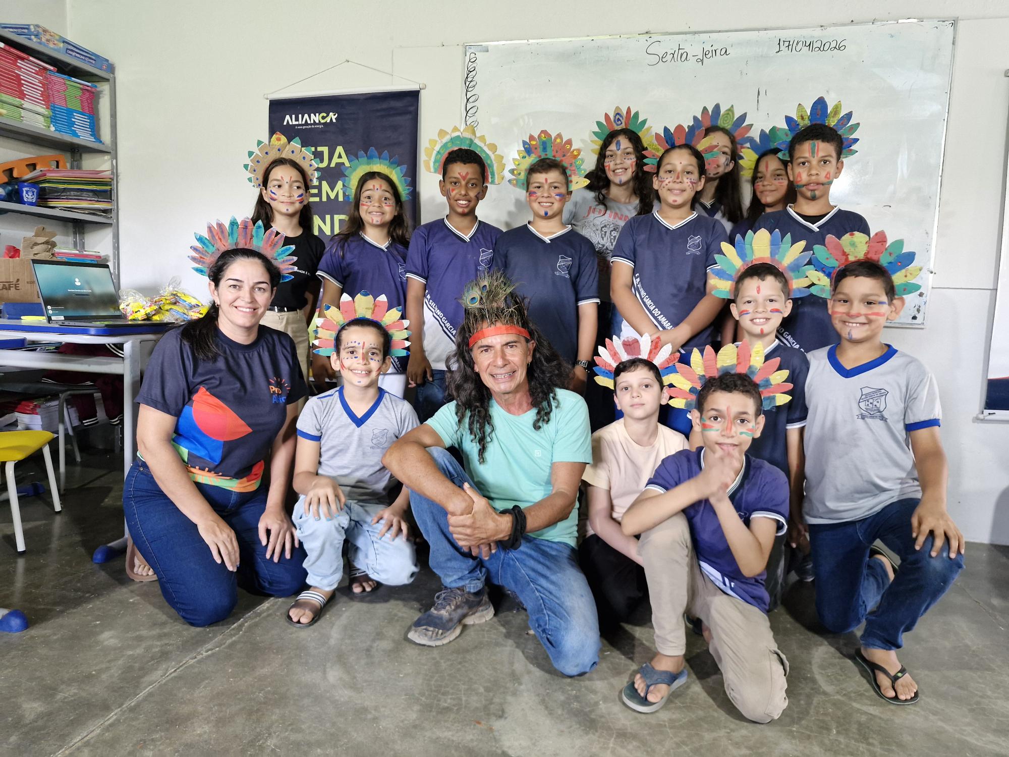 Foram apresentados o Programa de Educação Ambiental da Aliança, a contextualização do Dia dos Povos Indígenas e promovidos diálogos sobre a importância da nomenclatura atual e o combate a estereótipos. Os alunos participaram de atividades práticas, como pintura facial com urucum, confecção de cocares com materiais recicláveis e uma aula sobre grafismos indígenas, além da exibição de vídeo educativo. O encerramento contou com uma atividade coletiva, simbolizando união, respeito e valorização cultural.
